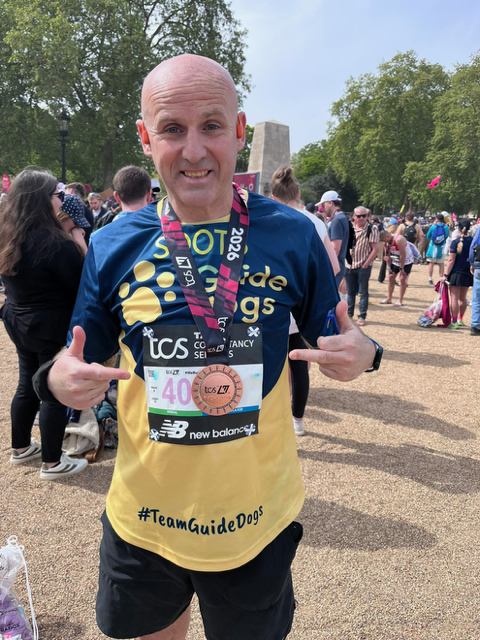 The 48 year old is raising funds for Guide Dogs UK with a target of £5,000, to donate please follow this link 2026tcslondonmarathon.enthuse.com/pf/alan-soutar